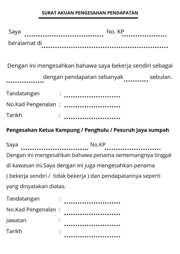 Surat Akuan Pengesahan Pendapatan Bekerja Sendiri Pdf